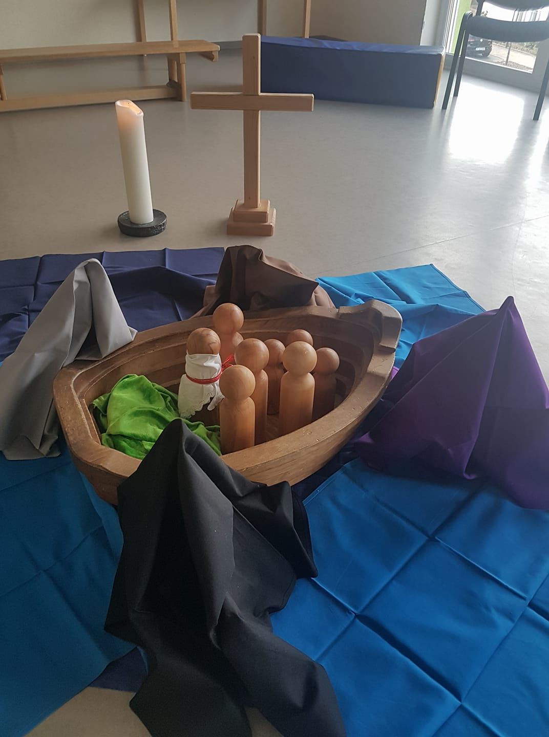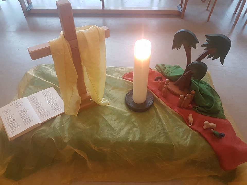 Einmal im Monat feiern wir vormittags einen Gottesdienst mit unserer Kindergartenpfarrerin, zu dem wir auch die Eltern herzlich einladen.