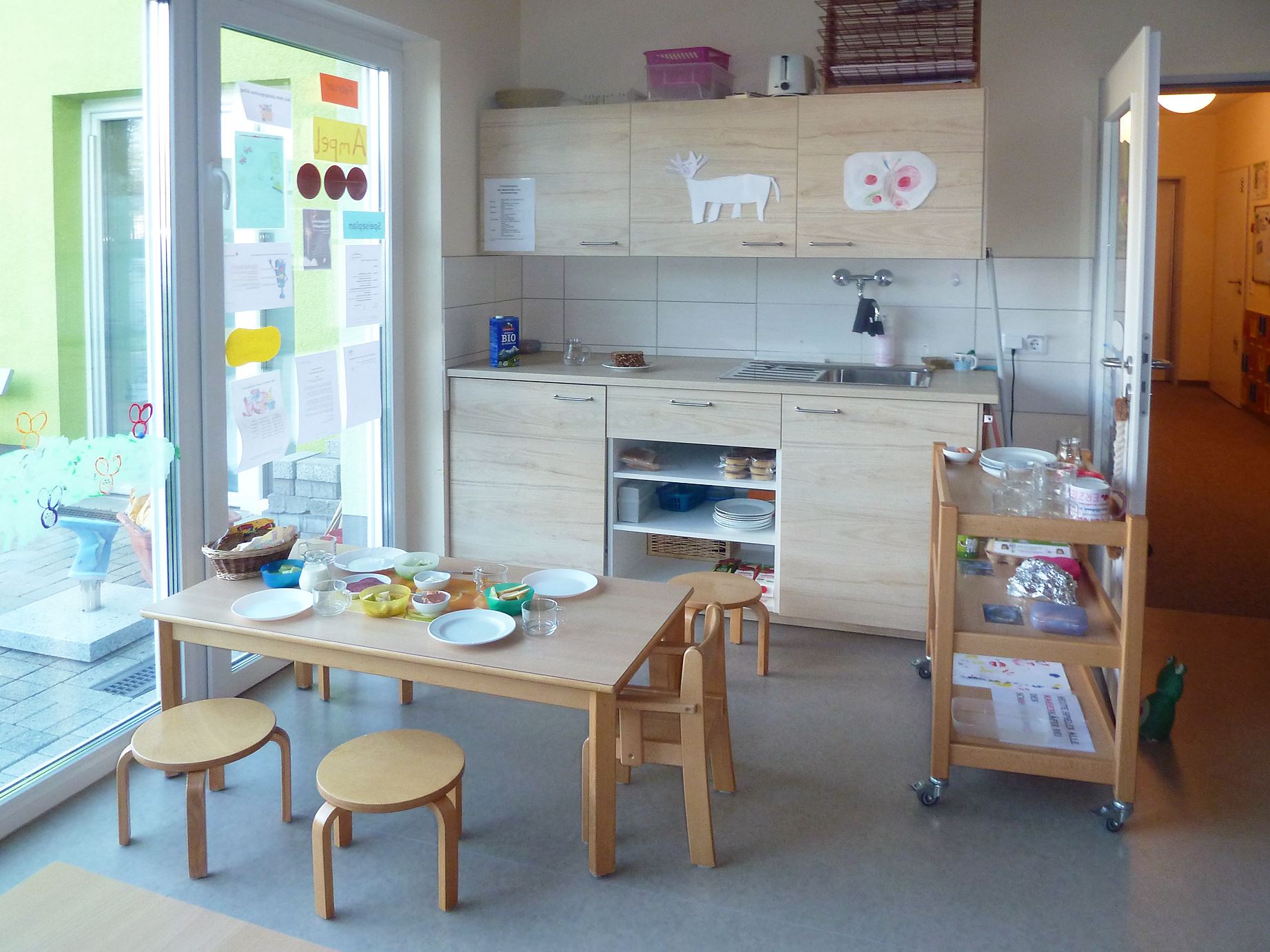 Der Raum bietet die Möglichkeit, angepasst an die Interessen und Bedürfnisse der Kinder, entsprechendes Material zur Verfügung zu stellen und immer wieder auszutauschen. Er wird auch für Kleingruppenarbeit genutzt.