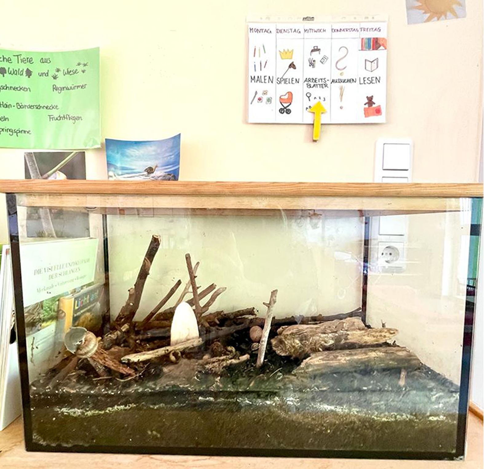 Im Rollenspiel können die Kinder in andere Rollen schlüpfen, ob verkleidet, auf der Bühne oder in der Kinderwohnung. Die Bühne dient ihnen dazu, ihre eigene Show zu präsentieren: mit Musikinstrumenten, Handpuppen oder dem eigenen Körper. In der Kinderwohnung werden familiäre Situationen nachgespielt, verarbeitet und weiterentwickelt. Auch die Tischspiele haben hier ihren Platz. Wichtig sind die Tiere, die von den Kindern beobachtet und versorgt werden. Das Angebot in diesem Bereich ist nicht immer gleich, es wird mit den Kindern nach ihren Bedürfnissen und Interessen umgestaltet.