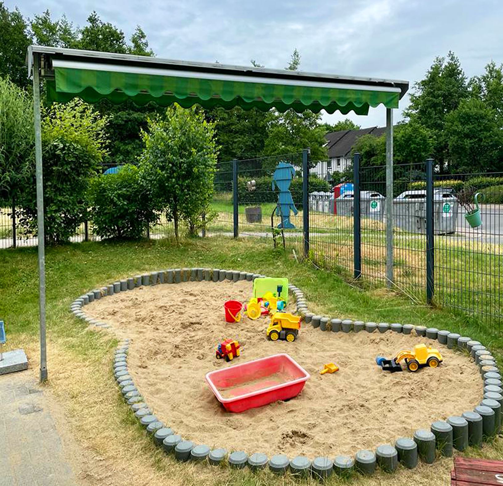 Zur jeder Gruppe gehört ein eigenes, altersmäßig gestaltetes Außengelände, das von den Kindern gerne genutzt wird, sofern nicht ein Ausflug in den nahegelegenen Wald oder zum Pferdehof ansteht.