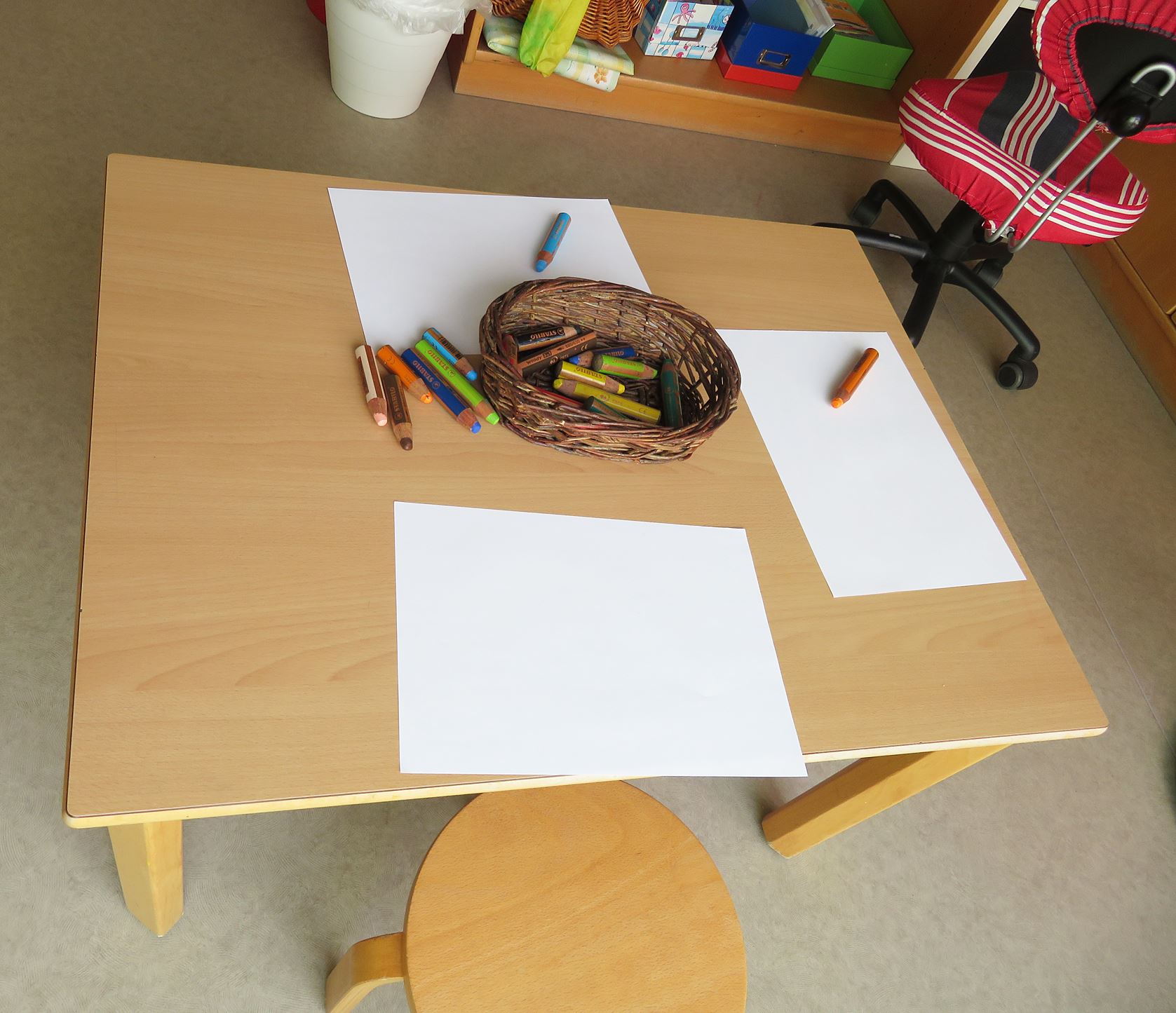 Der Raum bietet die Möglichkeit, angepasst an die Interessen und Bedürfnisse der Kinder, entsprechendes Material zur Verfügung zu stellen und immer wieder auszutauschen. Er wird auch für Kleingruppenarbeit genutzt.