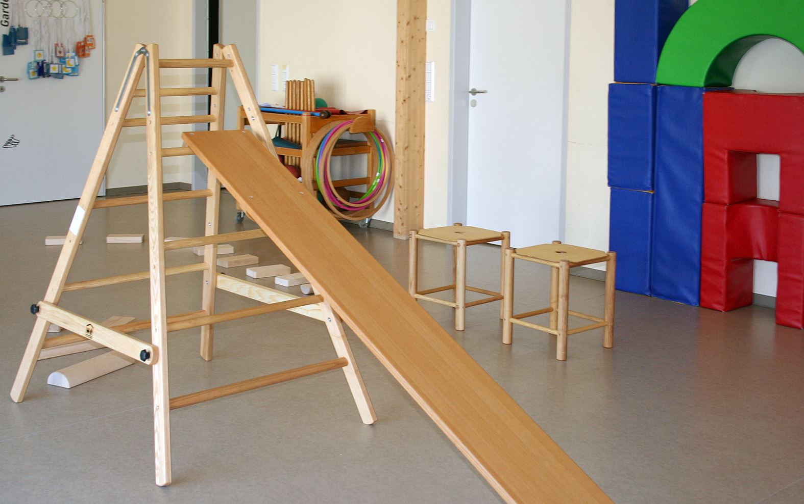 Bewegung ist ein wichtiger Motor für die kindliche Entwicklung. Unser Bewegungsraum bietet ganzheitliche Erfahrungen durch Materialien zum Klettern, Springen, Schaukeln und vieles mehr. Dabei nutzen wir unsere Pikler- und Hengstenbergmaterialien ebenso wie z.B. Rollenrutsche, Schaukel, Turnbänke, Reifen und Rollbretter. Regelmäßig sind hier Bewegungsbaustellen zu finden. Er ist auch ein Ort der Begegnung und wird von uns für Feste und Feiern, den Spatzenchor, dem Zahlenland, Gottesdienste und Freitagskreise sowie für Elternveranstaltungen gern genutzt.