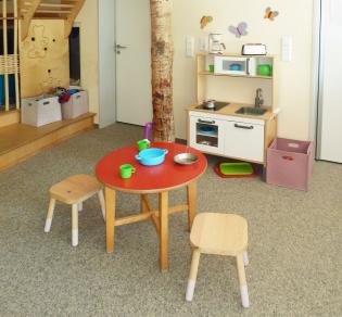 Der Raum bietet die Möglichkeit, angepasst an die Interessen und Bedürfnisse der Kinder, entsprechendes Material zur Verfügung zu stellen und immer wieder auszutauschen. Er wird auch für Kleingruppenarbeit genutzt.
