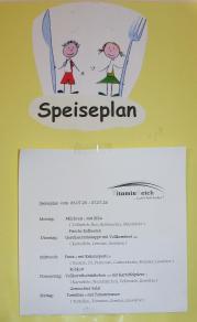 Das Kinderrestaurant wird für Frühstück, Mittagessen und Picknick genutzt. Die Sitzecken bieten eine schöne Möglichkeit, bei den Mahlzeiten miteinander ins Gespräch zu kommen. Hier finden auch hauswirtschaftliche Angebote in Kleingruppen, wie zum Beispiel Backen und Kochen, statt. Auf den Boards können Kinder sich über das Essensangebot des Tages informieren und sehen, wer welche Tischdienste übernommen hat.